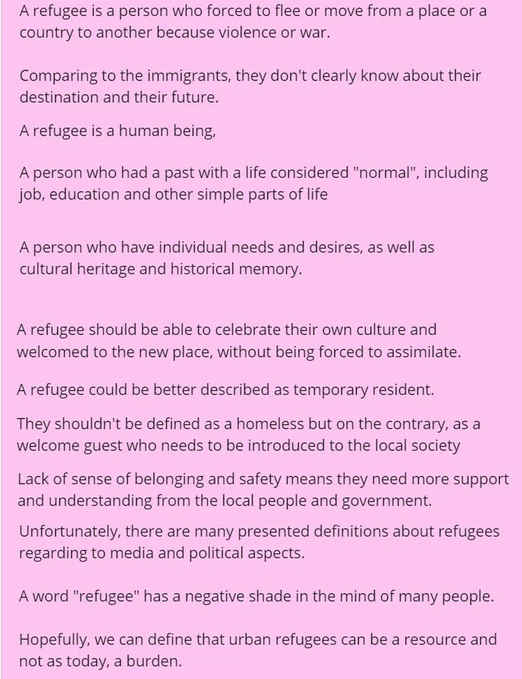 We will trigger the discussion with a first question: How do we define a refugee in a city?