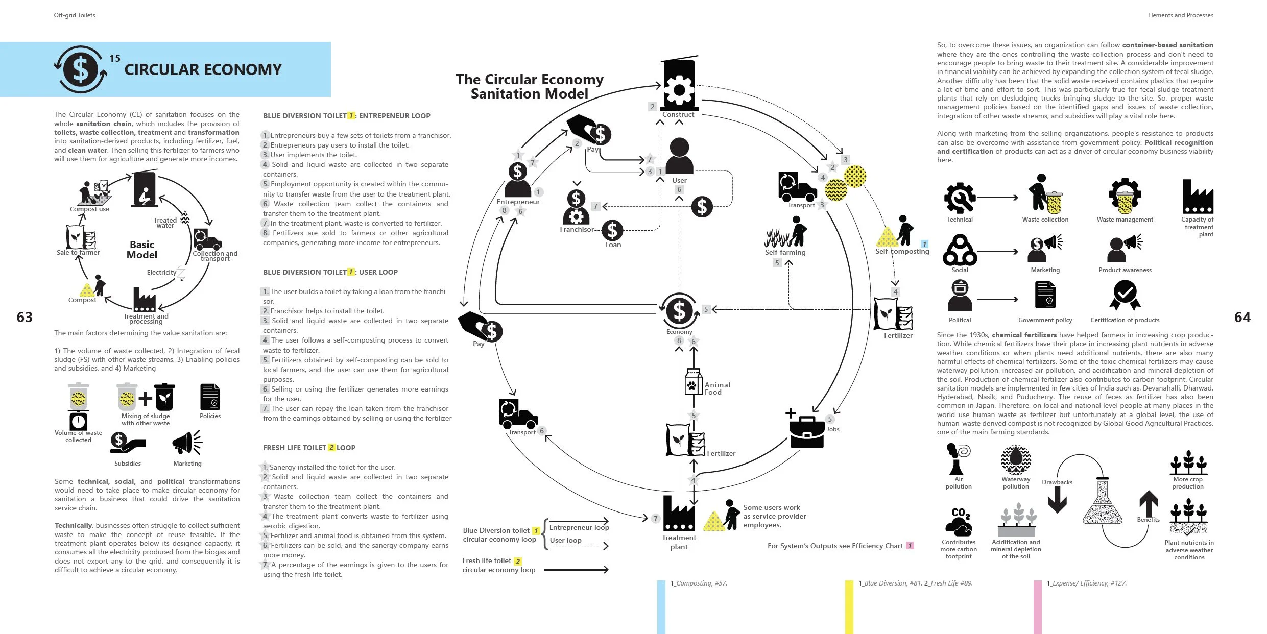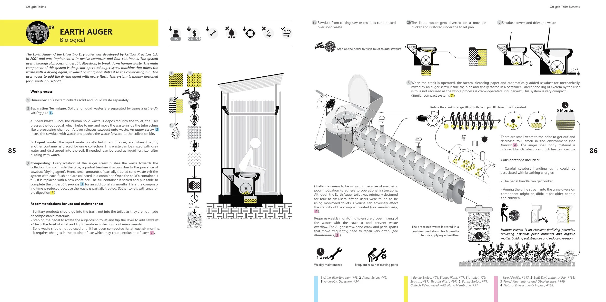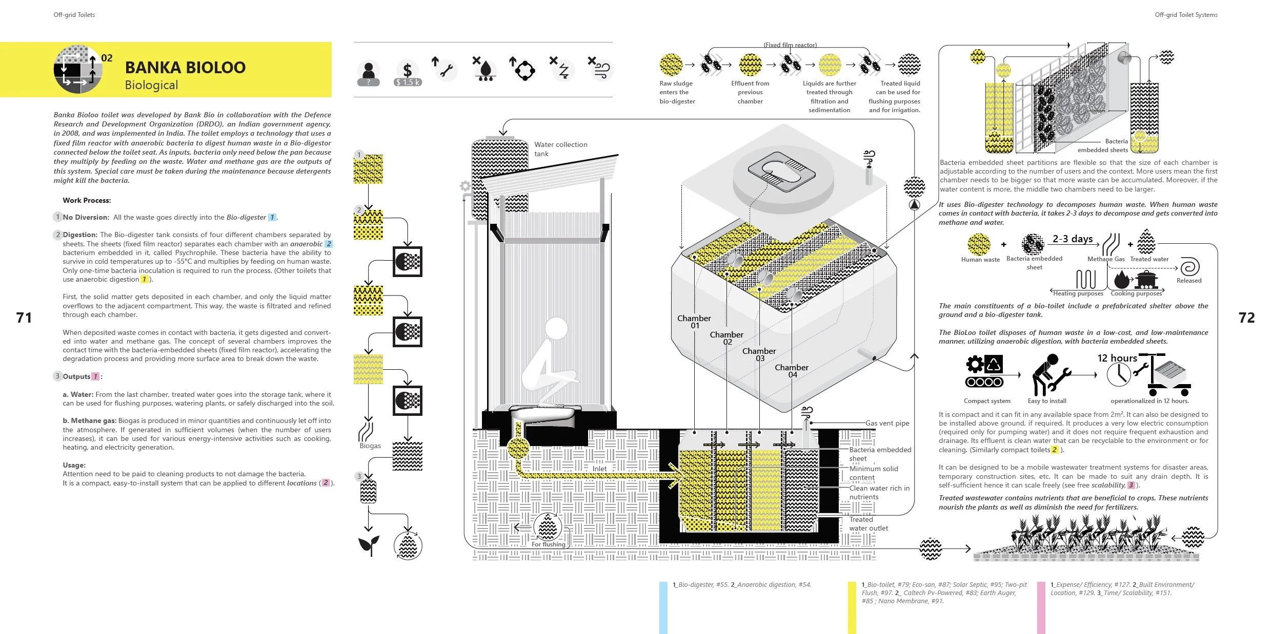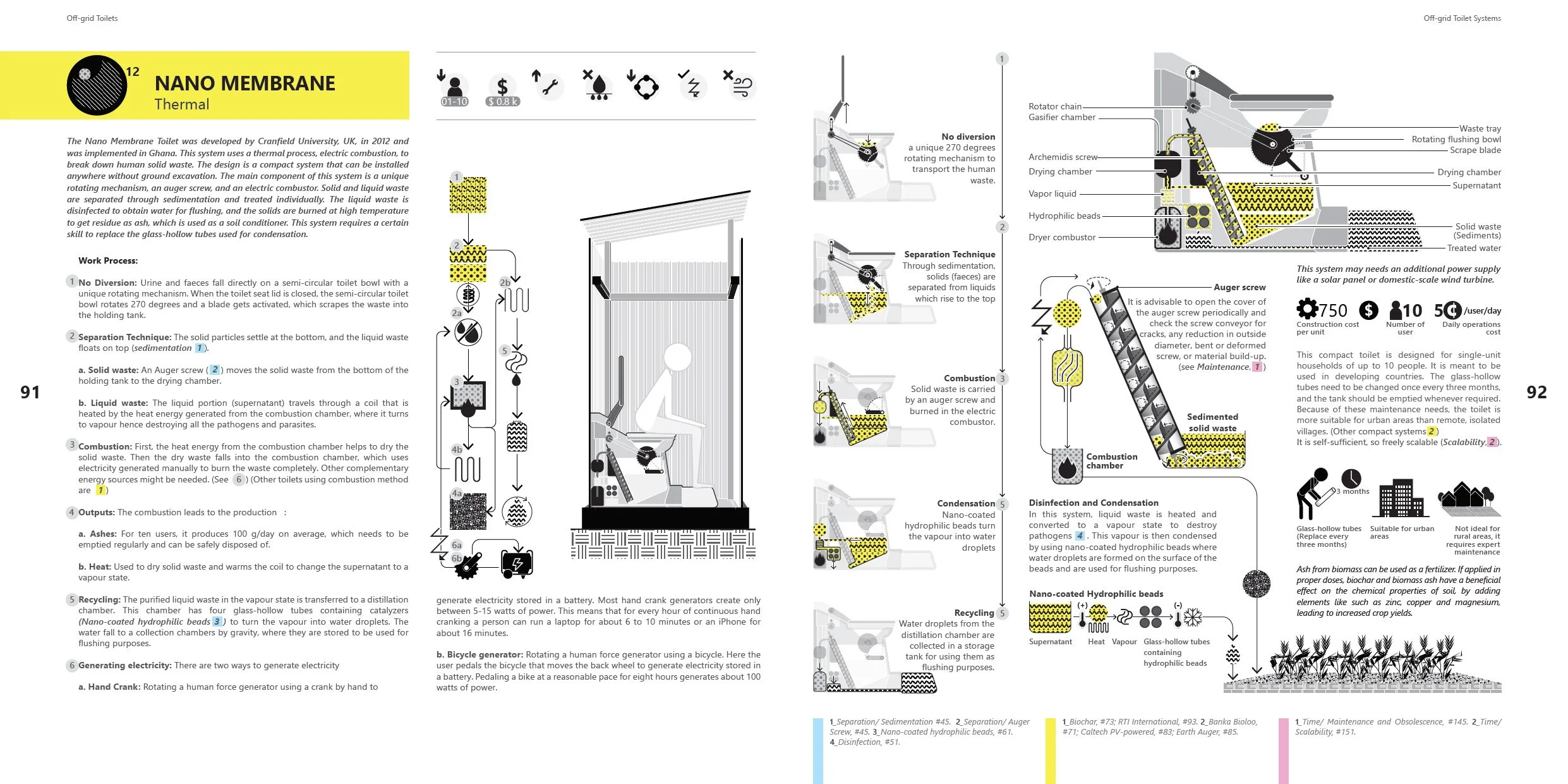 This chapter compiles sixteen off-grid sanitation systems which have been implemented worldwide. The systems are explained in a comprehensive manner through information provided directly by the developers of the systems. Despite the effort to clarify all steps involved in the selected systems, some information gaps are still noticeable due to the confidentiality related to some patent rights involved.